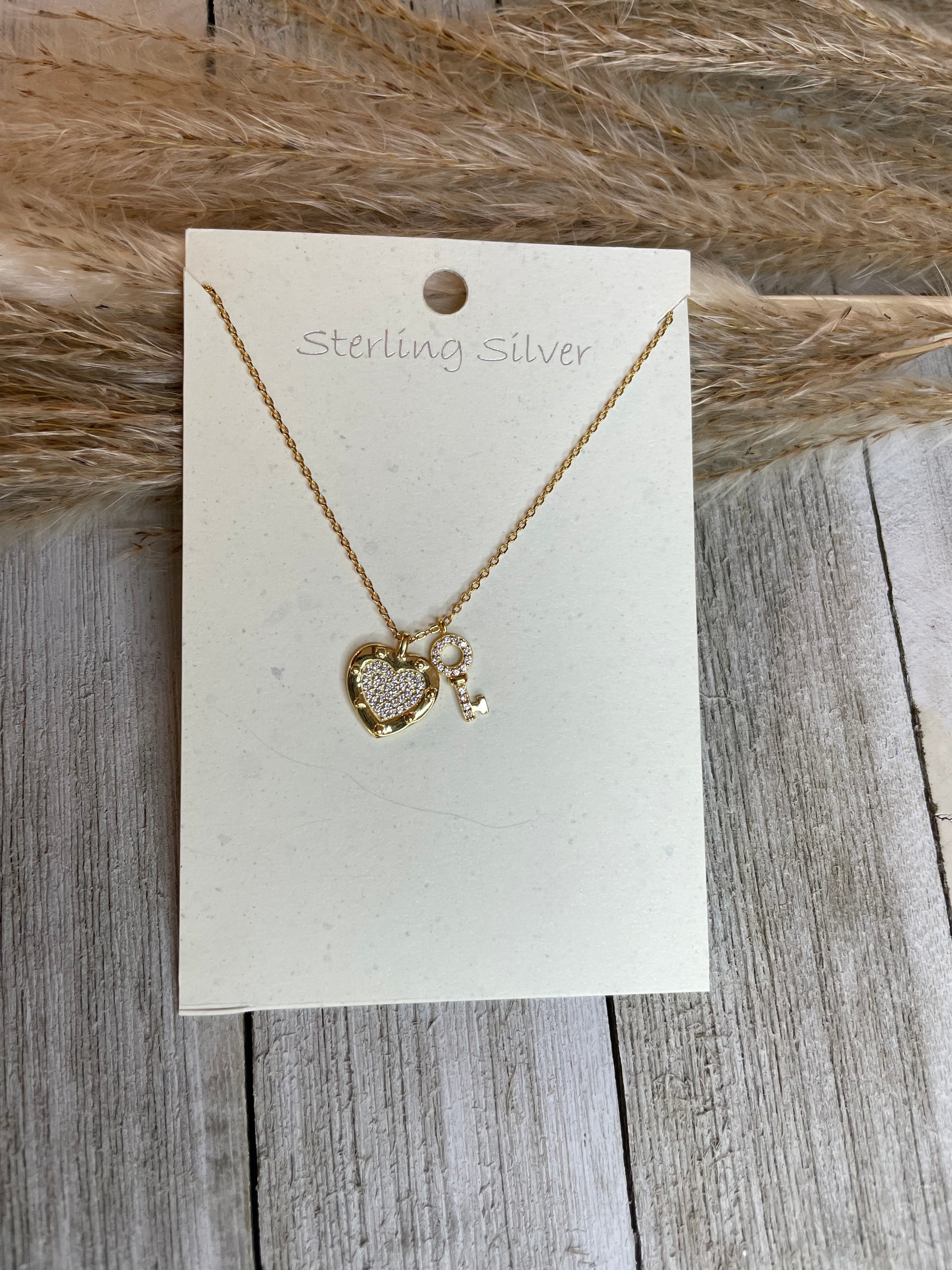 Unlock the style possibilities with our Key to my Heart necklace. Made of sterling silver and gold, this everyday accessory will add a touch of elegance to any outfit.