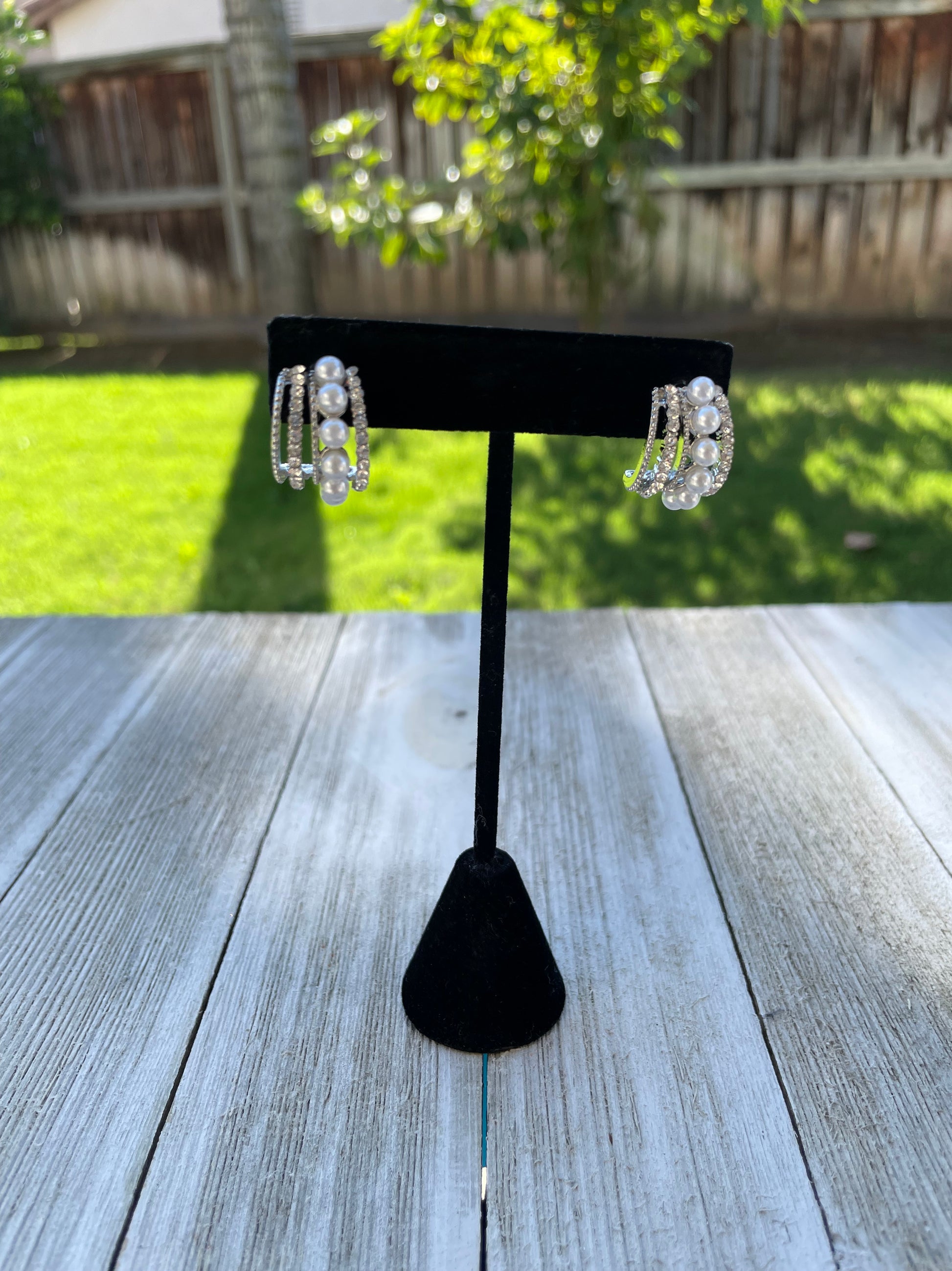 Let your style shine with these sparkling La Perla Hoops! With four rows of gleaming silver diamonds and dainty pearls, these hoops are the perfect finishing touch to any outfit. The perfect mix of fun and sophistication - jazz up your look today!