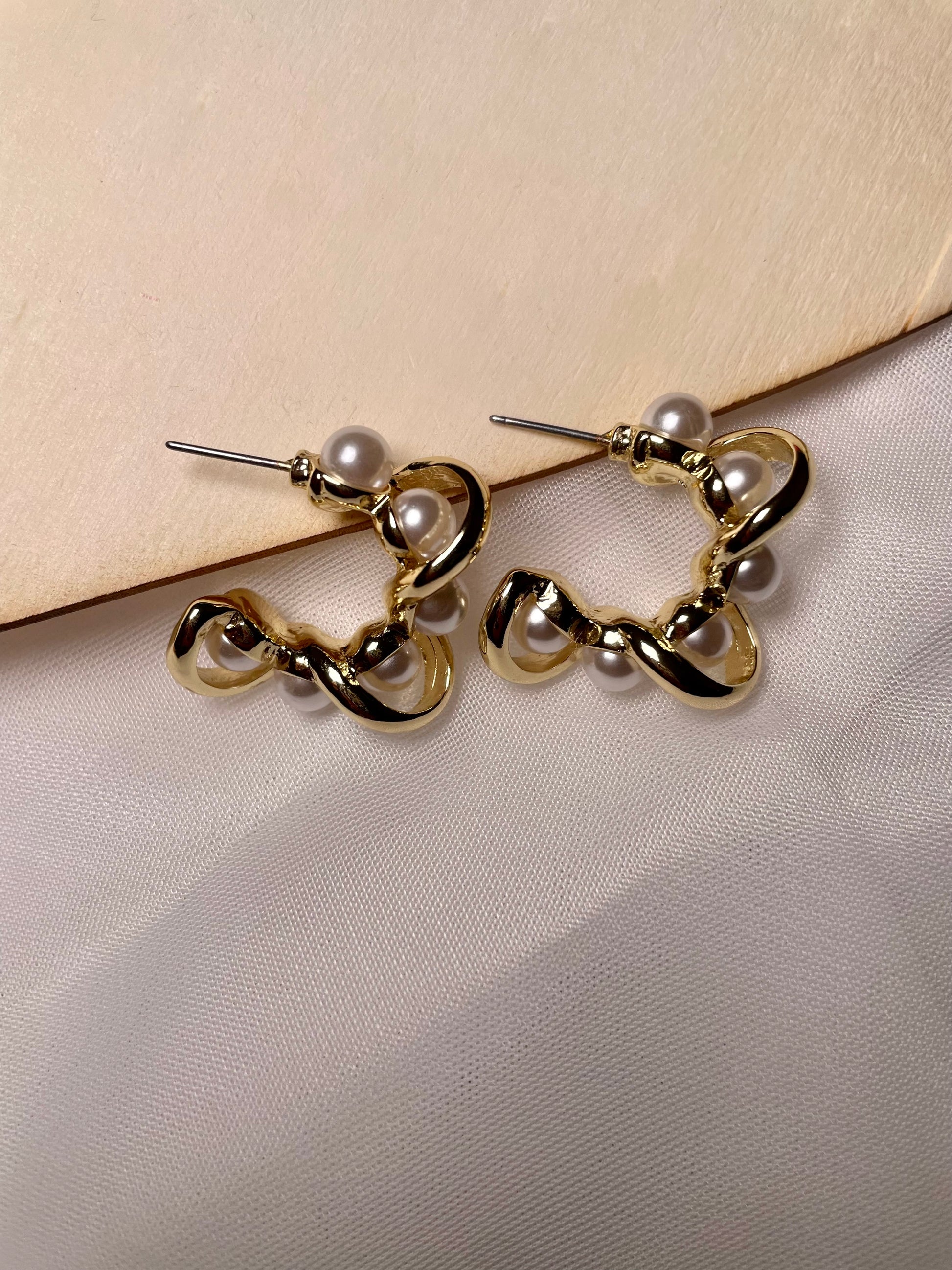 "Add a touch of elegance with our Paris Hoops. These pearly intricate metallic gold hoops will elevate any outfit. Perfect for a night out on the town or a casual day look. Stand out with this unique accessory. (No boring hoops here!)"