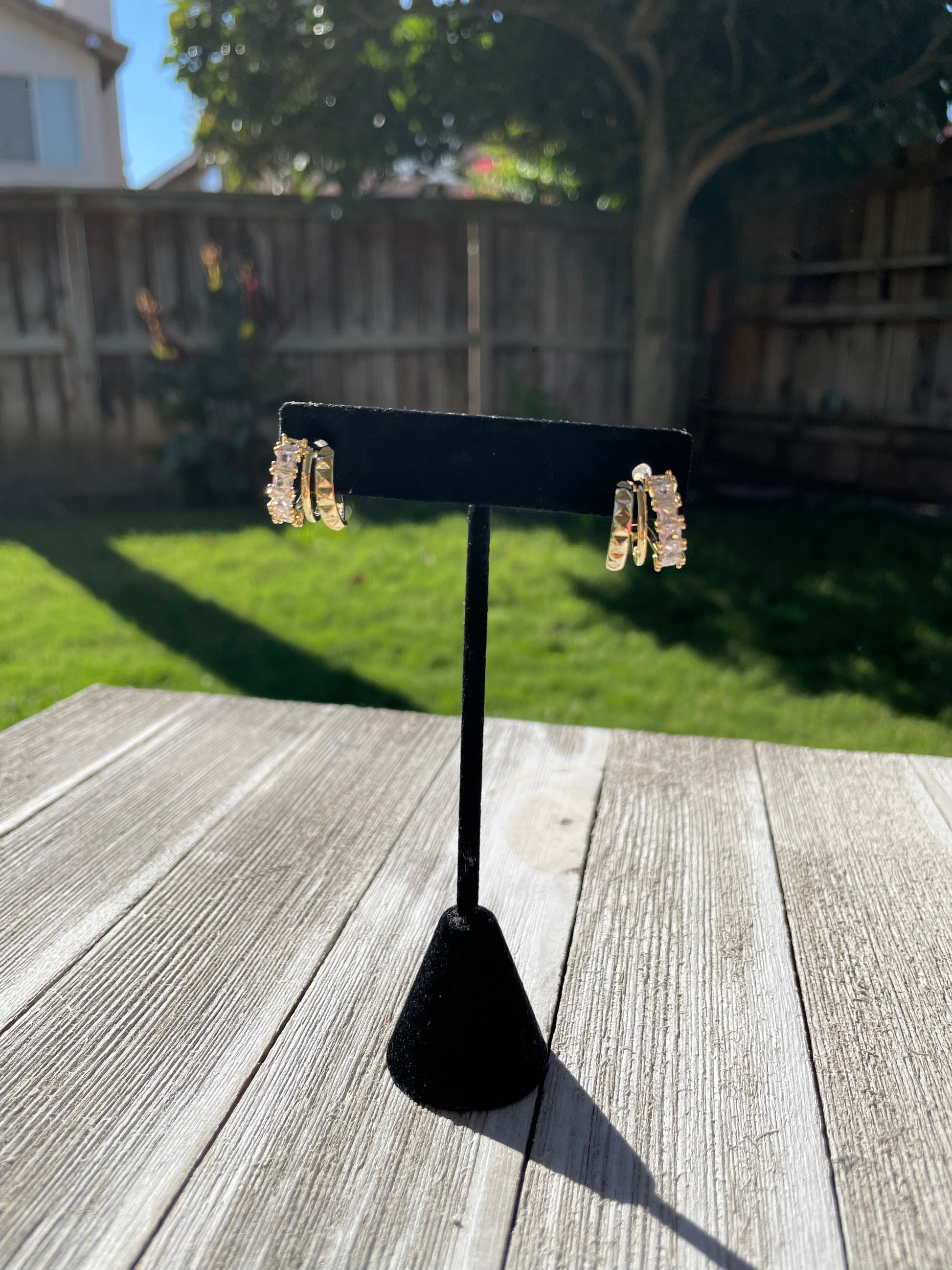 Light up your look with these eye-catching Shine On Hoops! 2 row gold with 1 row of diamond studs. These hoops are the perfect size for a subtle sparkle, sure to take your style game to the next level!